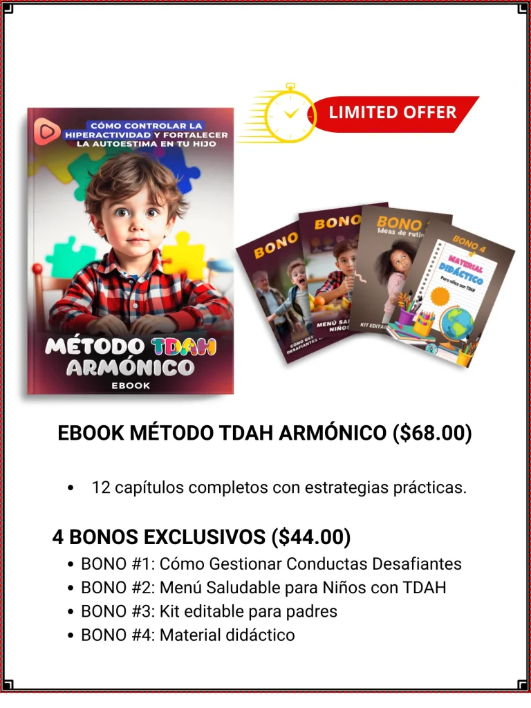 No es maldad, es falta de herramientas. El Ebook digital Método TDAH Armónico le da a él (y a tí) el mapa que necesitan.